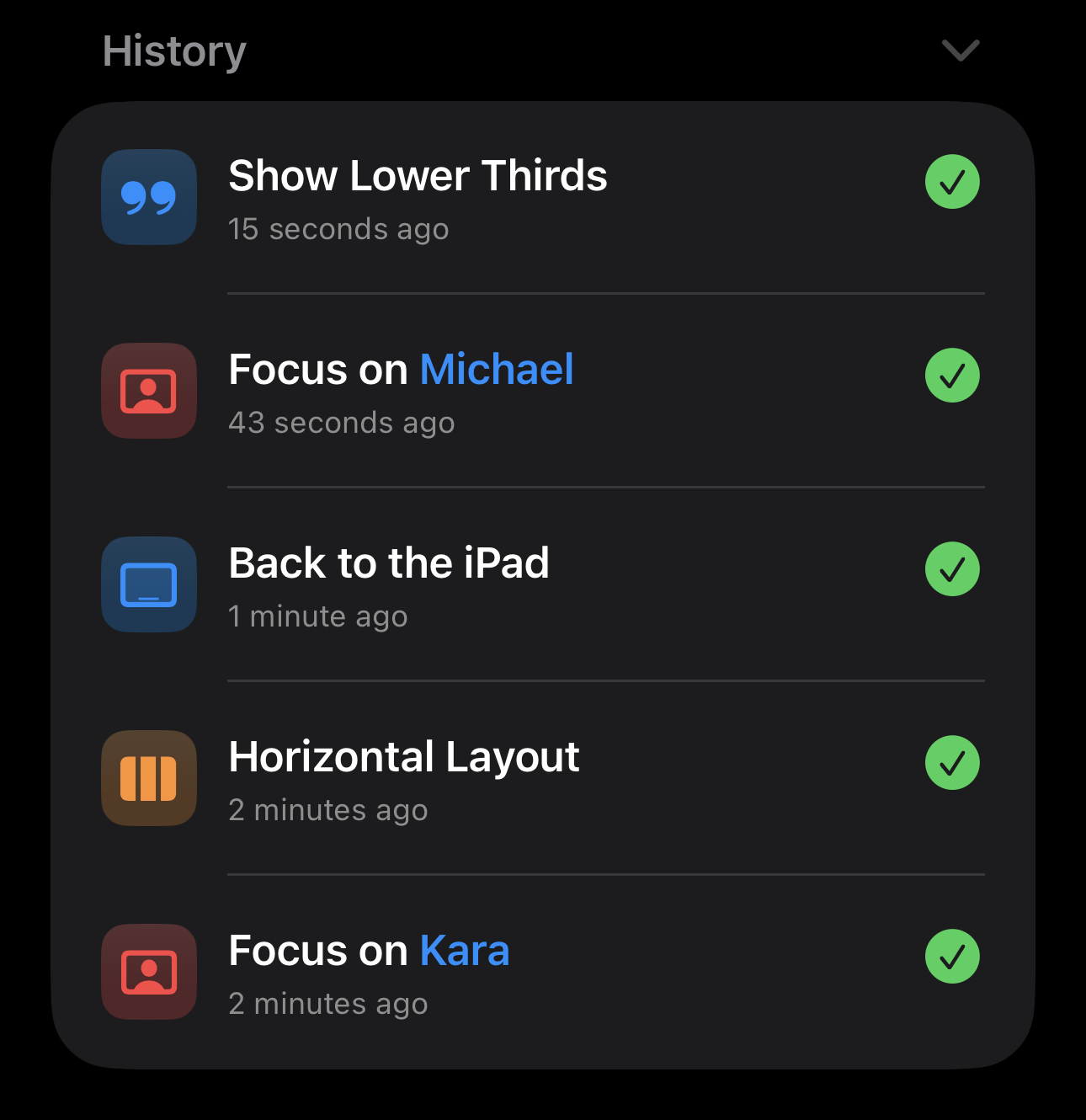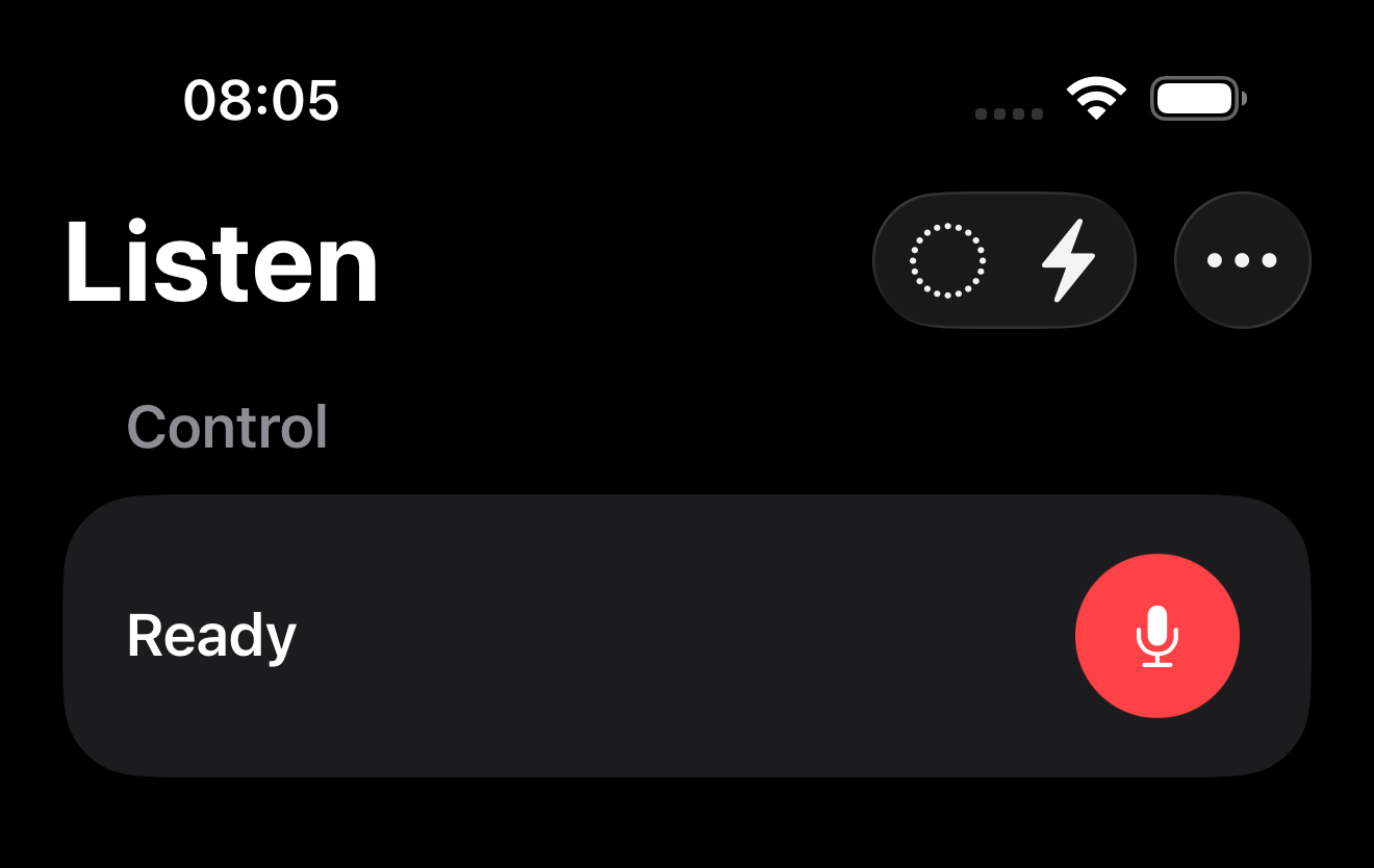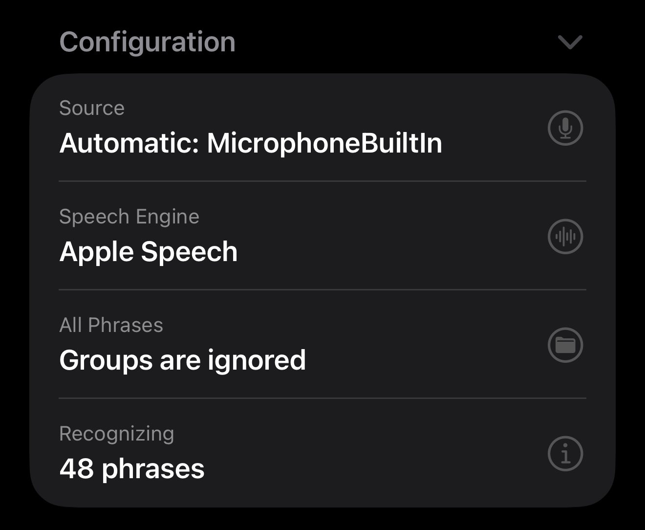 The Listen tab is where Action Phrase actively monitors speech for phrases and shows your action history from past recognized phrases.