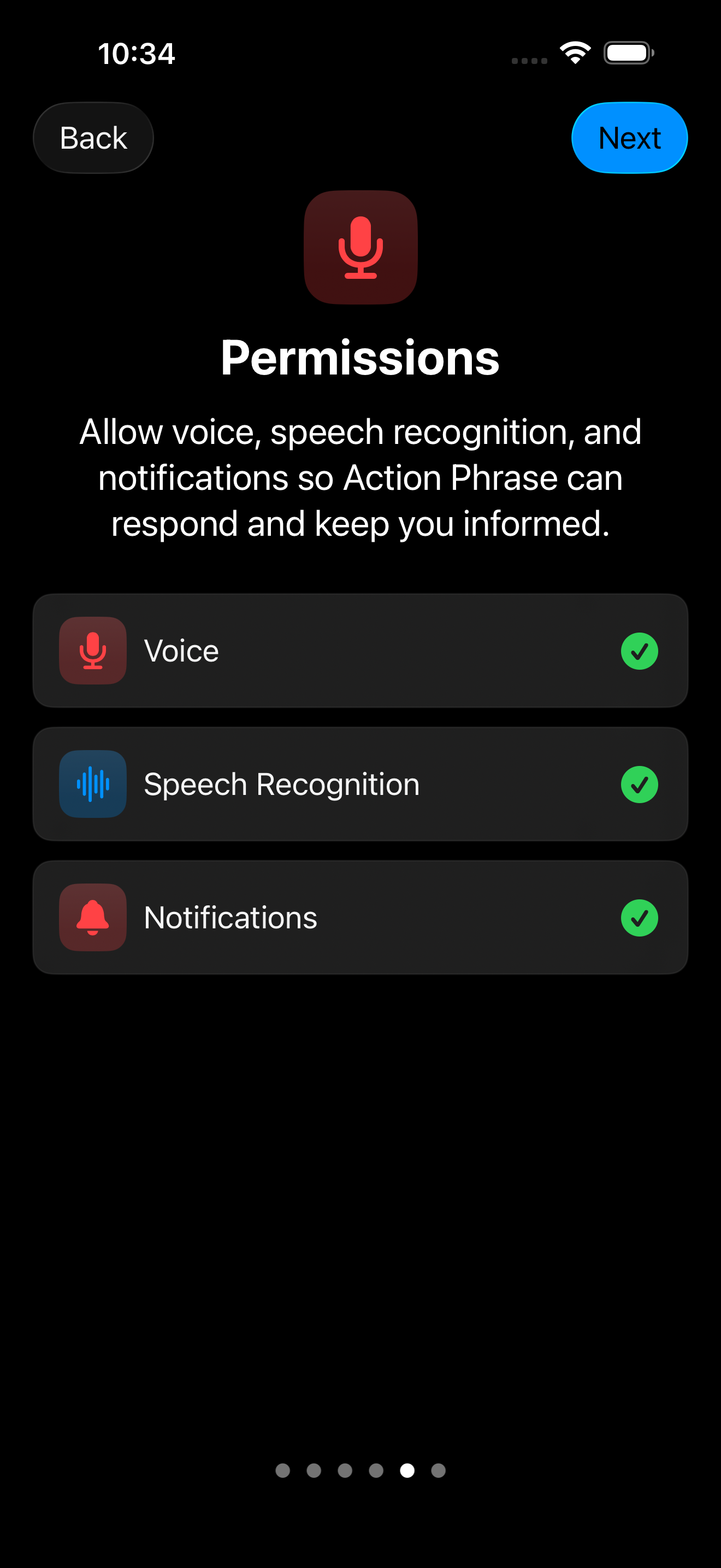 - Enable Permissions: Allow microphone and speech access. If you fail to provide Action Phrase the necessary permissions, you will have to enable them in Settings on your device.