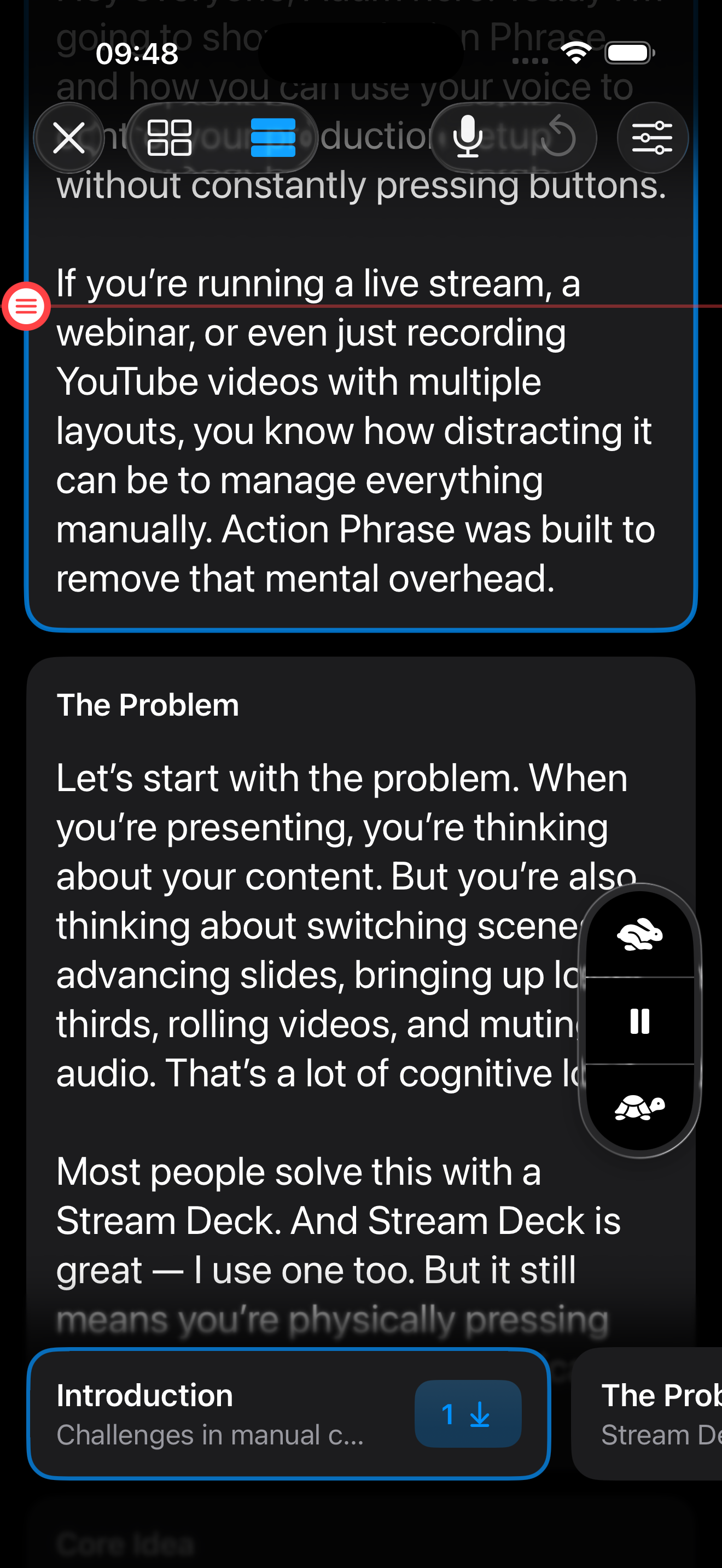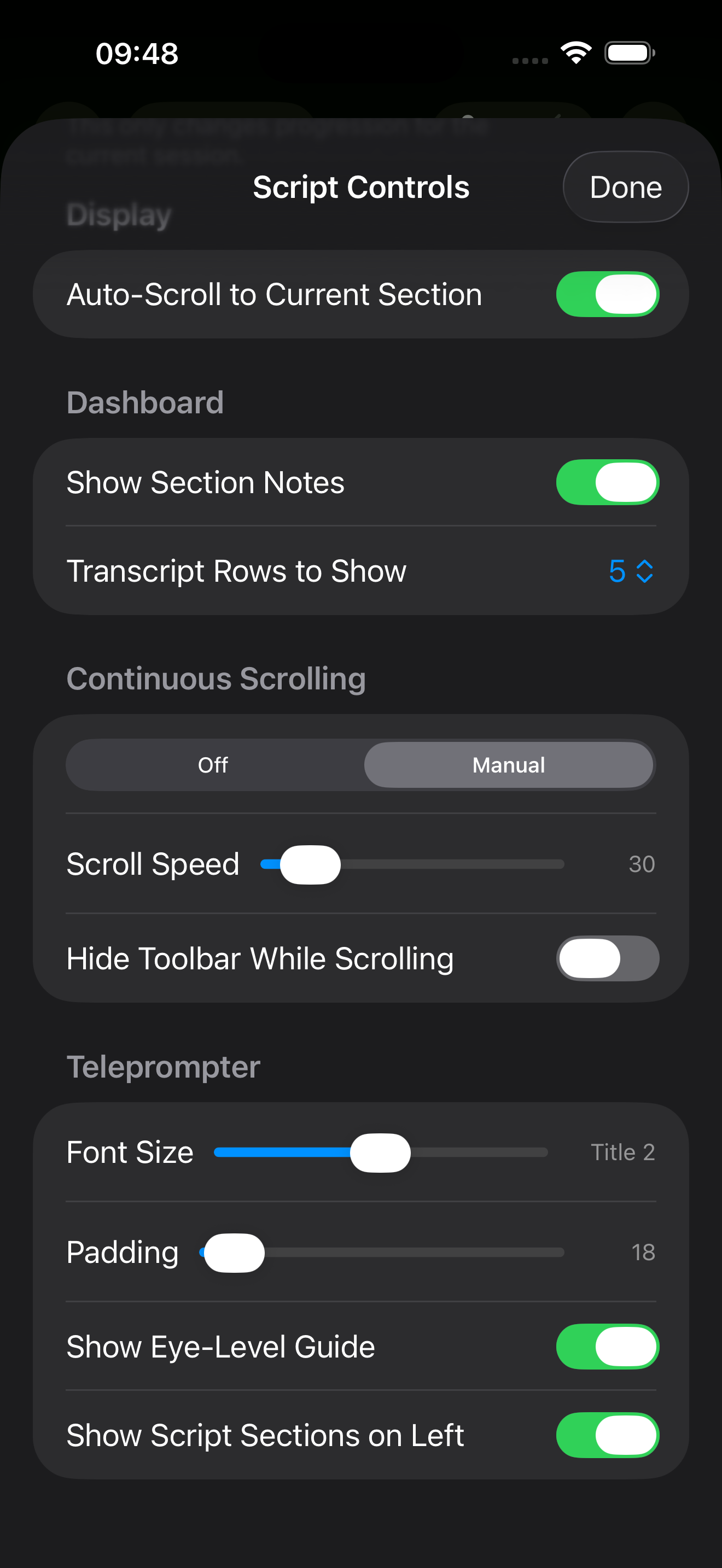 You can follow along section by section, jump to any part of the script, and tune scrolling behavior for your pace.
