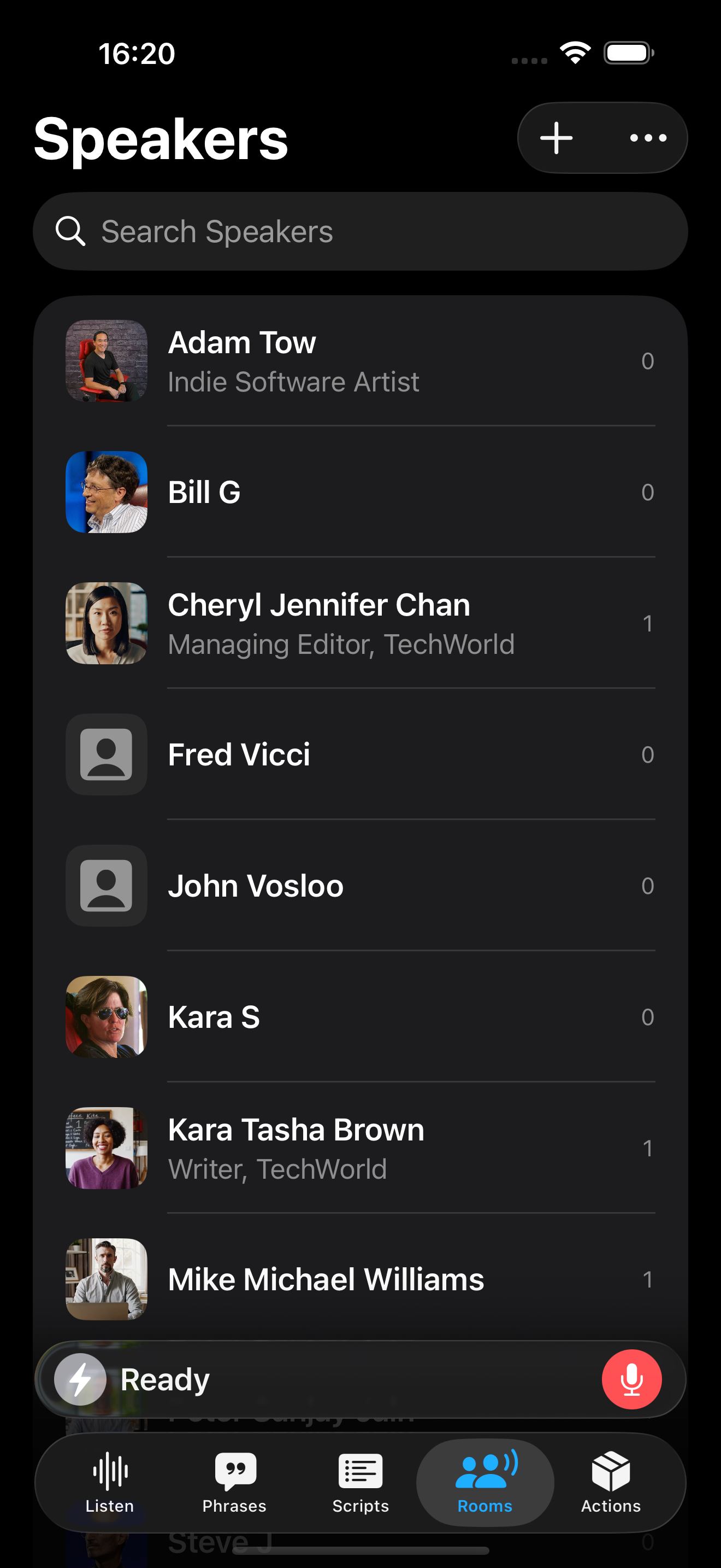 A speaker is a reusable profile that stores identity, appearance, and optional voice data so your Rooms workflow can distinguish one participant from another.