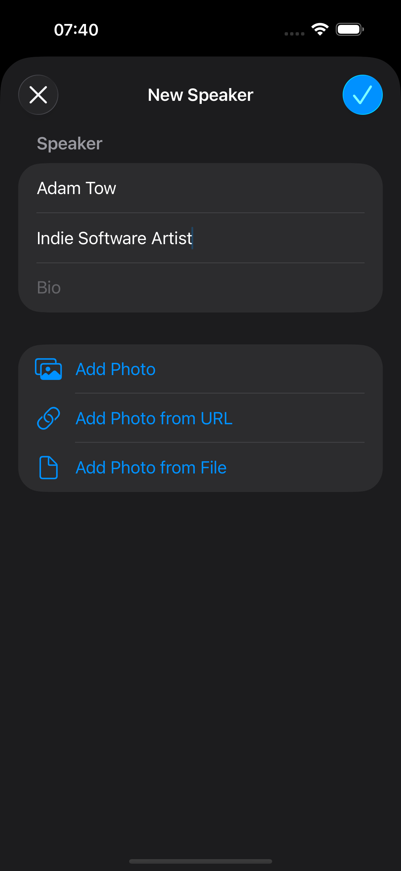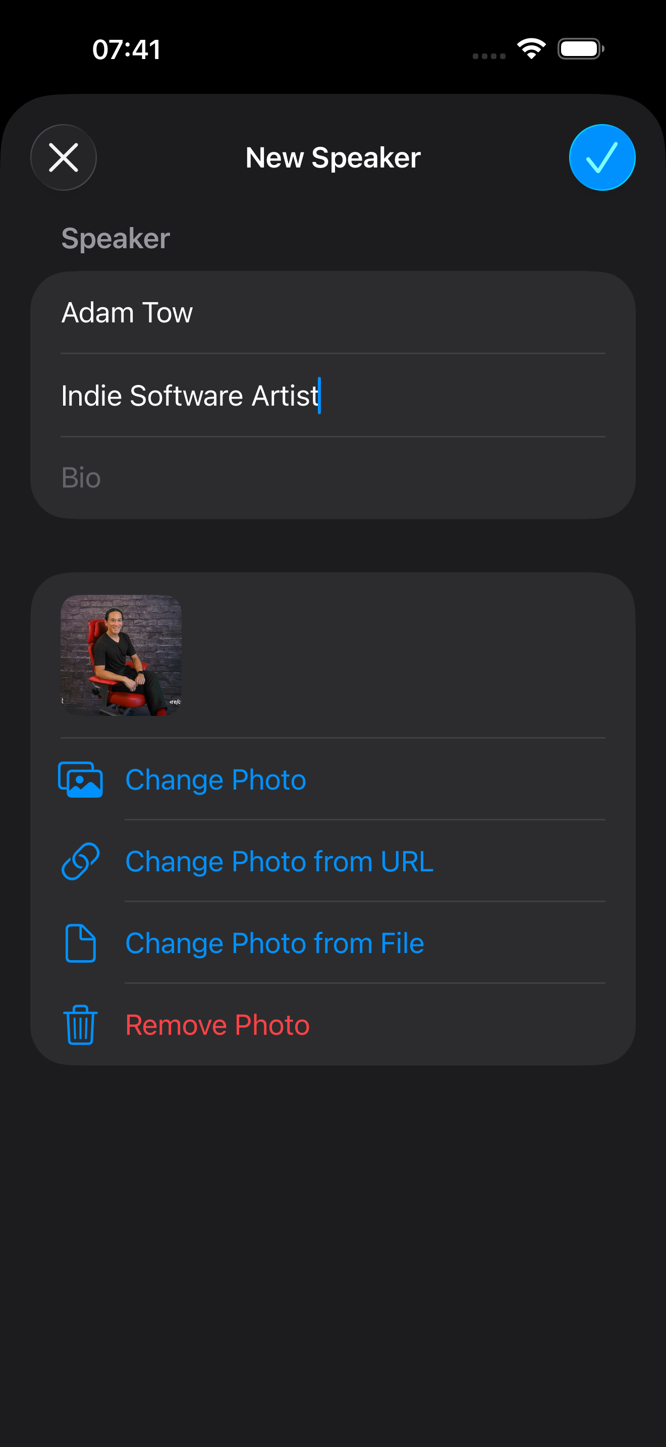 - Add a photo for a speaker using an image from your Photo Library, a URL, or a file on your device