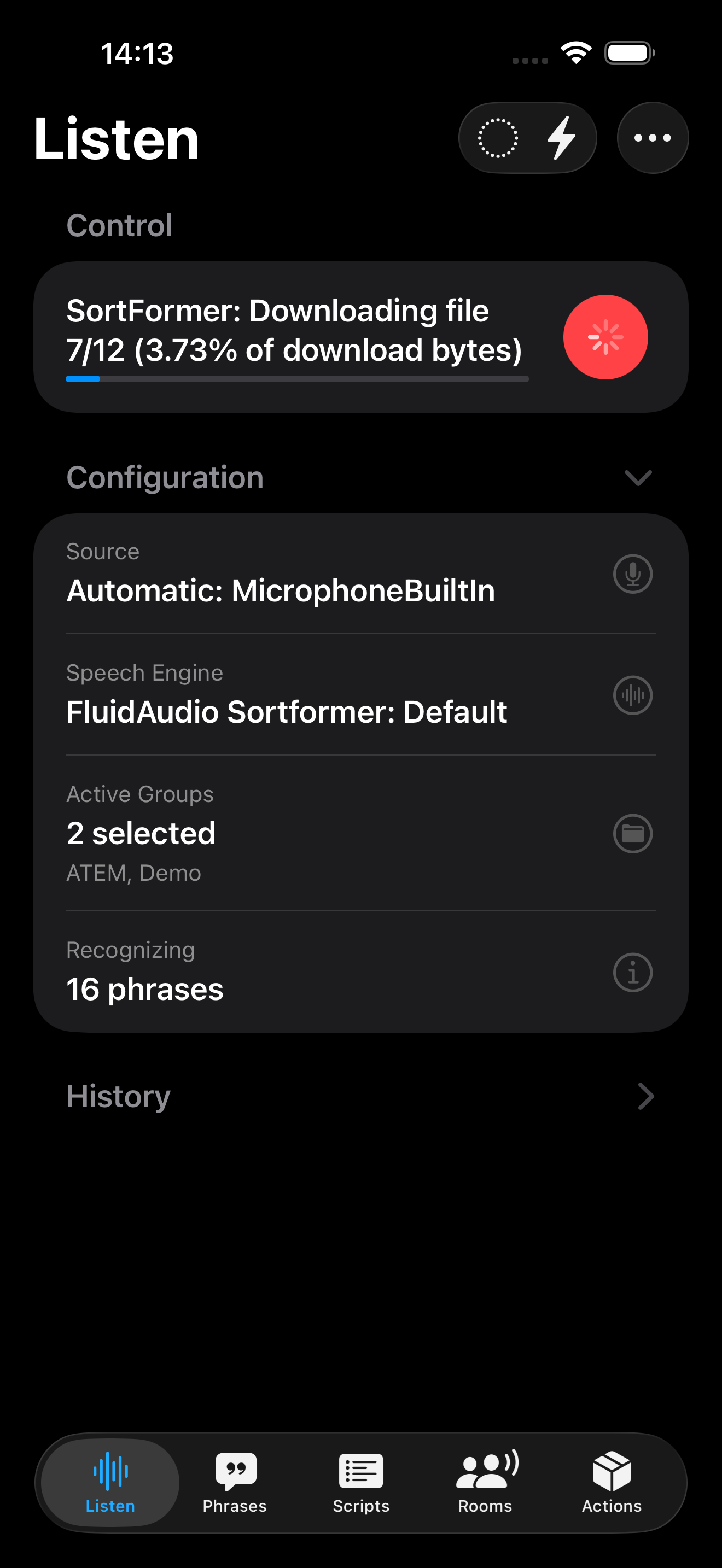 If the model download cache is deleted from the Advanced FluidAudio settings section, you will have to re-download the models the next time you use Action Phrase with the selected FluidAudio model.